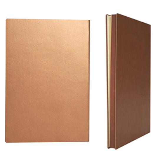 Cuaderno tamaño A5, con cubierta de PU eco-cuero de 2mm de espesor y lomo pintado de color al tono. Interior 80 hojas lineadas amarillas de 80gsm. Incluye banda separador de hojas al tono. Presentación individual en bolsa de polipropileno.