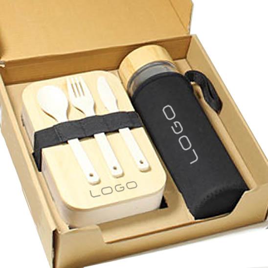 – Contenedor de alimentos con tapa de Bambú. Dos compartimentos plásticos, un separador y bandeja porta set de 3 cubiertos (cuchillo, tenedor, cuchara).