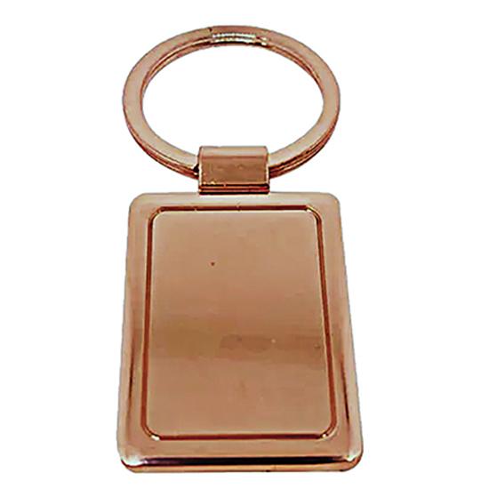 Llavero metálico rectangular encobrizado. Acabado brillante. Presentación en estuche de cartón laminado color negro con cuna interior de terciopelo.