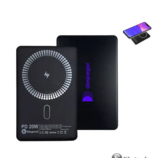 Power bank compacto fabricado aluminio y ABS PD. Cuenta con entrada y salida tipo-C, salida inalámbrica, tecnología de carga rápida y cable incluido. Es ideal para mantener tus dispositivos cargados durante viajes, jornadas laborales o actividades al aire libre.